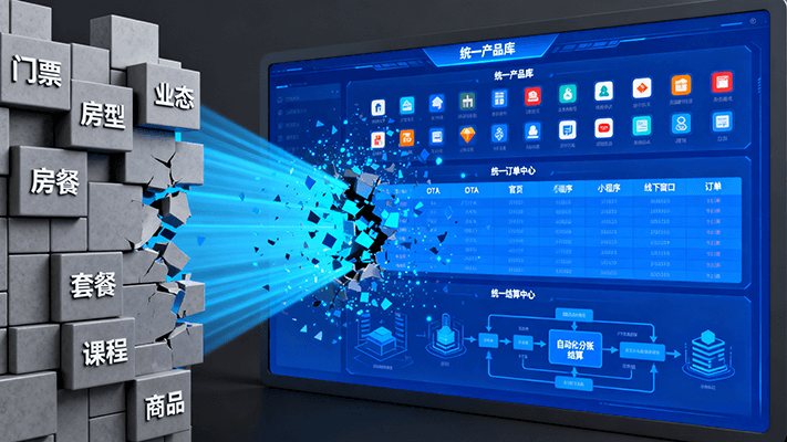 - 统一产品库: 门票、房型、套餐、课程、商品等全部上线,统一管理。